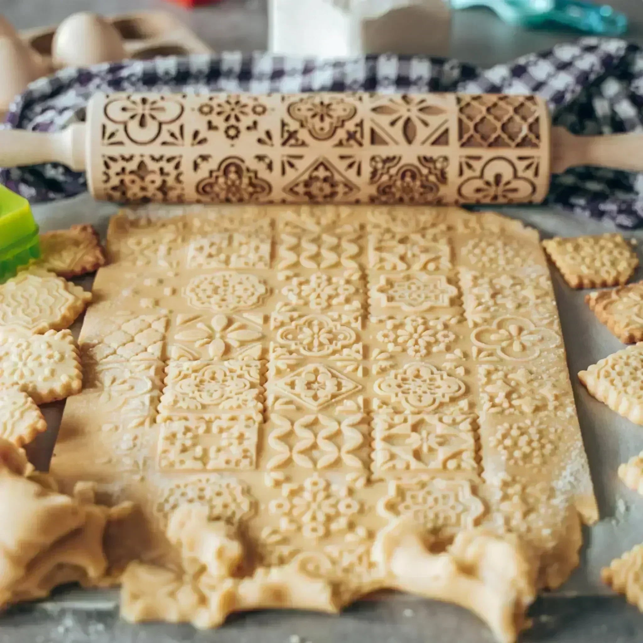- Idées à développer : 1. Scénarios d'utilisation concrets : préparation de biscuits de Noël, goûters d'enfants, ateliers pâtisserie. 2. Facilité d'emploi : geste unique pour marquer la pâte, adapté aux débutants comme aux passionnés. 3. Compatibilité avec différentes pâtes (pâte sablée, biscuits) sans détailler de caractéristiques techniques non fournies.Imaginez le contact du rouleau en bois sous votre paume, le léger crissement des motifs qui s'impriment, et l'aspect doré des biscuits où chaque flocon et chaque silhouette d'élan ressort en relief. Ce rendu tactile et visuel enrichit votre expérience de cuisson et vous donne envie de montrer, offrir et déguster ces biscuits décorés avec soin.