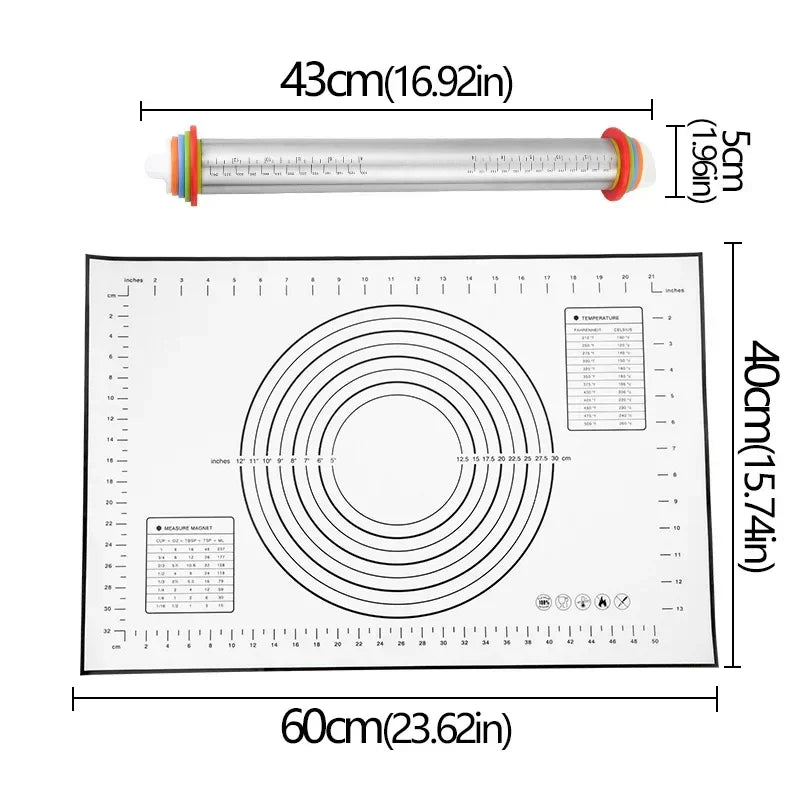 Rouleau à pâtisserie rétractable avec anneaux de mesure et tapis de pétrissage en silicone non adhésif