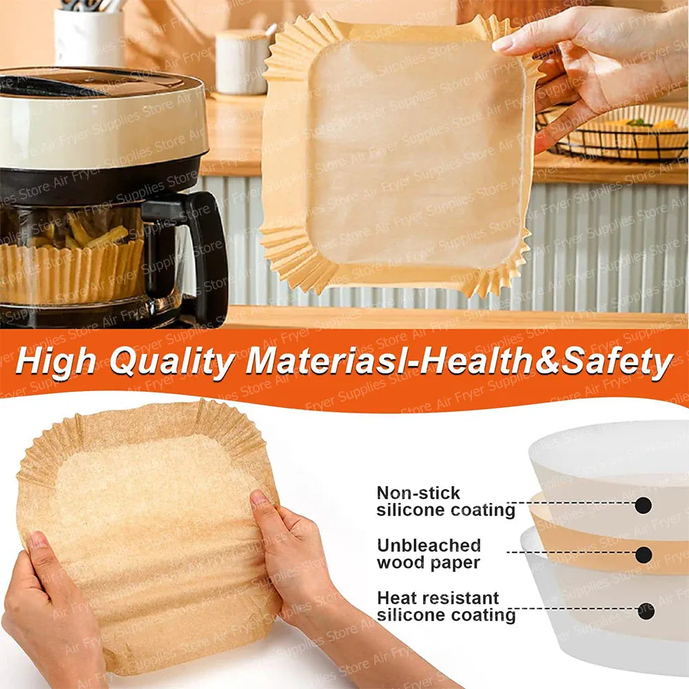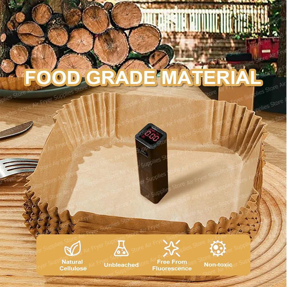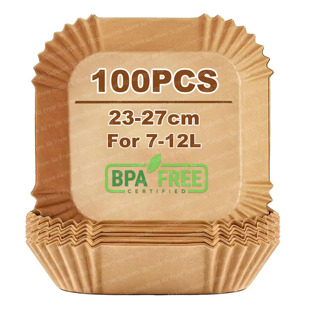 • Lot de 200 papiers carrés pour friteuses à air de 7 à 12 L, idéal pour des repas sans tracas.